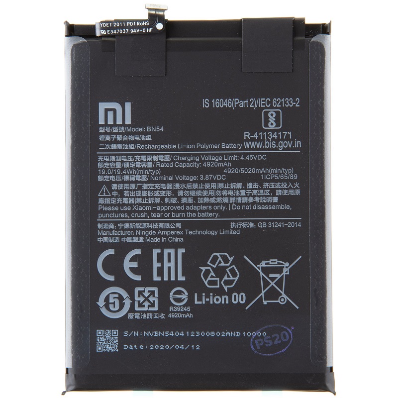 Specification: Baterie Xiaomi BN54 Redmi 9, Redmi Note 9 5020mAh Original (volně)