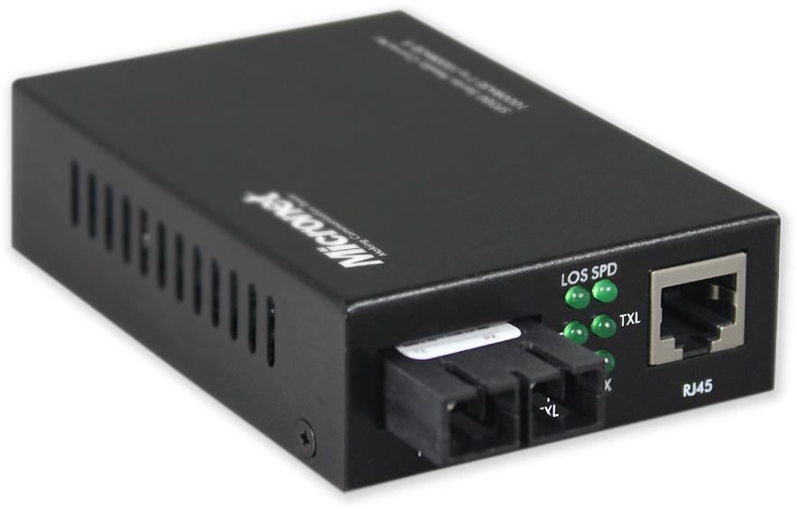 Digitální převodník pro SM vlákna s SC konektorem. Umožňuje rozšířit síť Ethernet na vzdálenost výrazně větší než 100m, odstraňuje problém rušení, poskytuje galvanické oddělení.