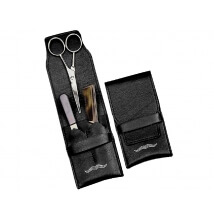 Sada pro péči o vousy a knír obsahuje nůžky na vousy, hřebínek na vousy a pilník.