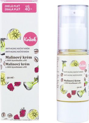 Malinový noční krém s AHA kyselinami a B5, Kvitok, 30 ml – www.biooo.cz