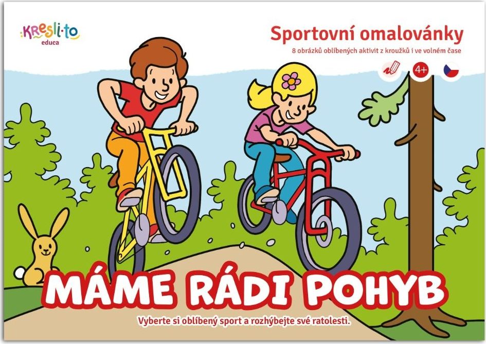 Máme rádi pohyb – Sportovní omalovánky A5, Imagu, W037124 Najdeš zde své oblíbené sportovní kroužky a aktivity jako je florbal, plavání nebo inline či parkour. A i když venku prší, můžeš si s námi zasportovat. Který sport nejvíce baví tebe?