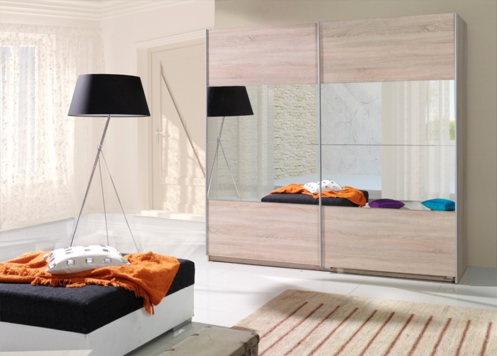 ve skříň je umístěna uprostřed a v pravé části šatní tyč, v horní části uprostřed je jedna police.