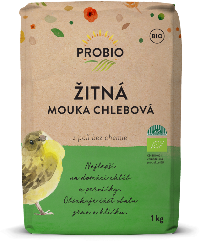 Chlebová mouka osahuje část obalu zrna a klíčku. Na chlebové mouky vybíráme zrna s nejlepší pekařskou kvalitou. Při mletí zachováváme část obalu zrna a klíčku, a proto obsahují PROBIO chlebové mouky více vlákniny a cenných živin než mouky bílé. Na delší dobu zasytí. Chlebová mouka je vhodná nejen na chleba, ale i na zdravější sladké i slané pečení. Hodí se i na housky, krekry, perníčky, pizzy,…
